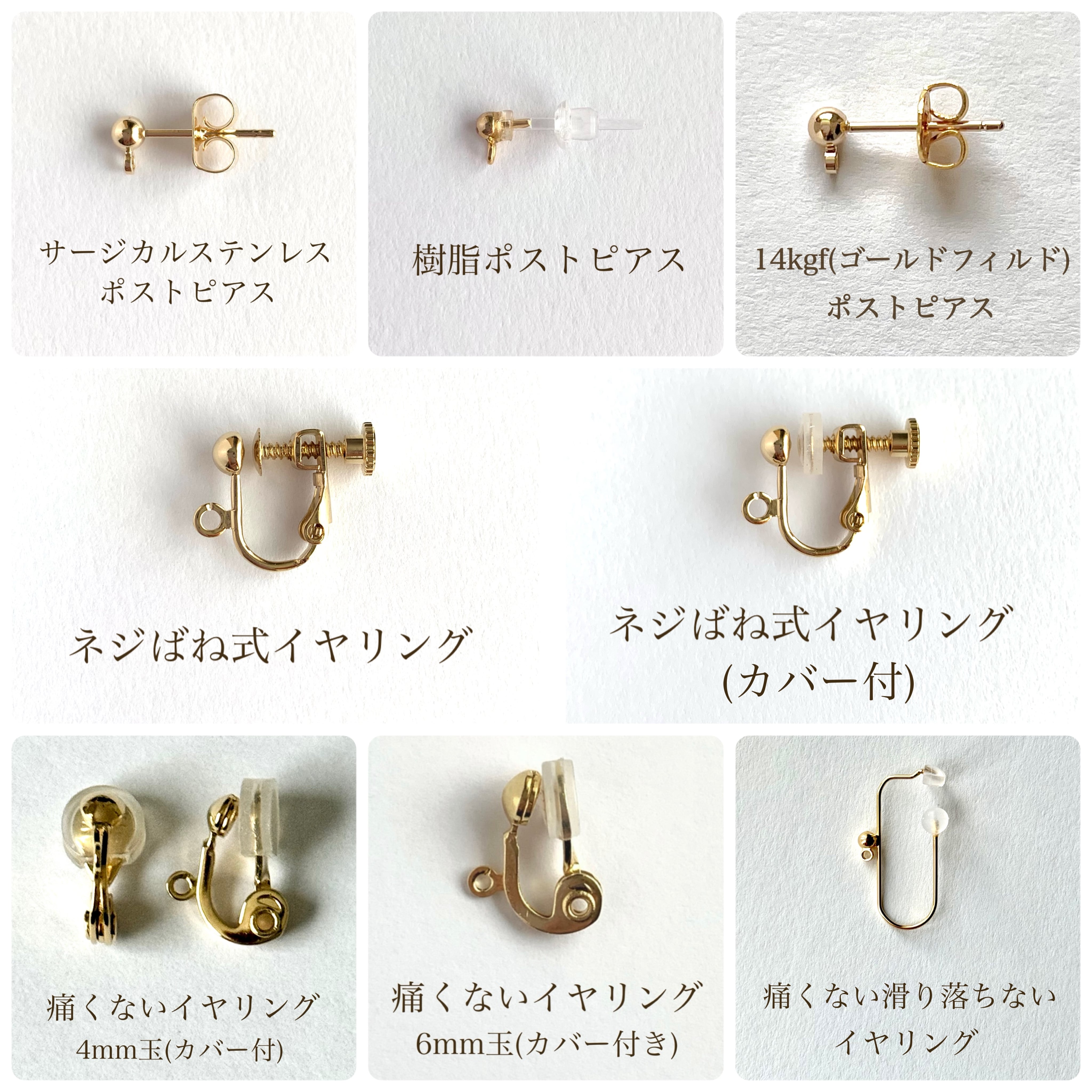 ピアスには金属アレルギー対応のニッケルフリー素材を使用しておりますが全ての方にアレルギーが出ないという保証はございませんので予めご承知置き下さい。
