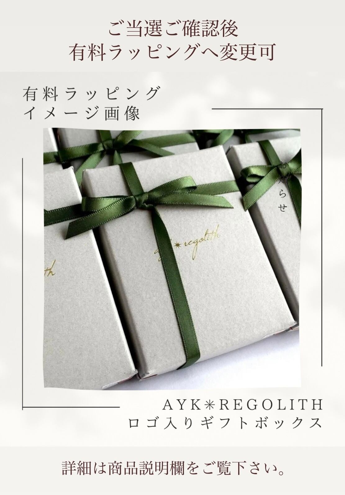 ayk✳︎regolithロゴ入りギフトボックスにお入れし、リボンをお掛けし梱包