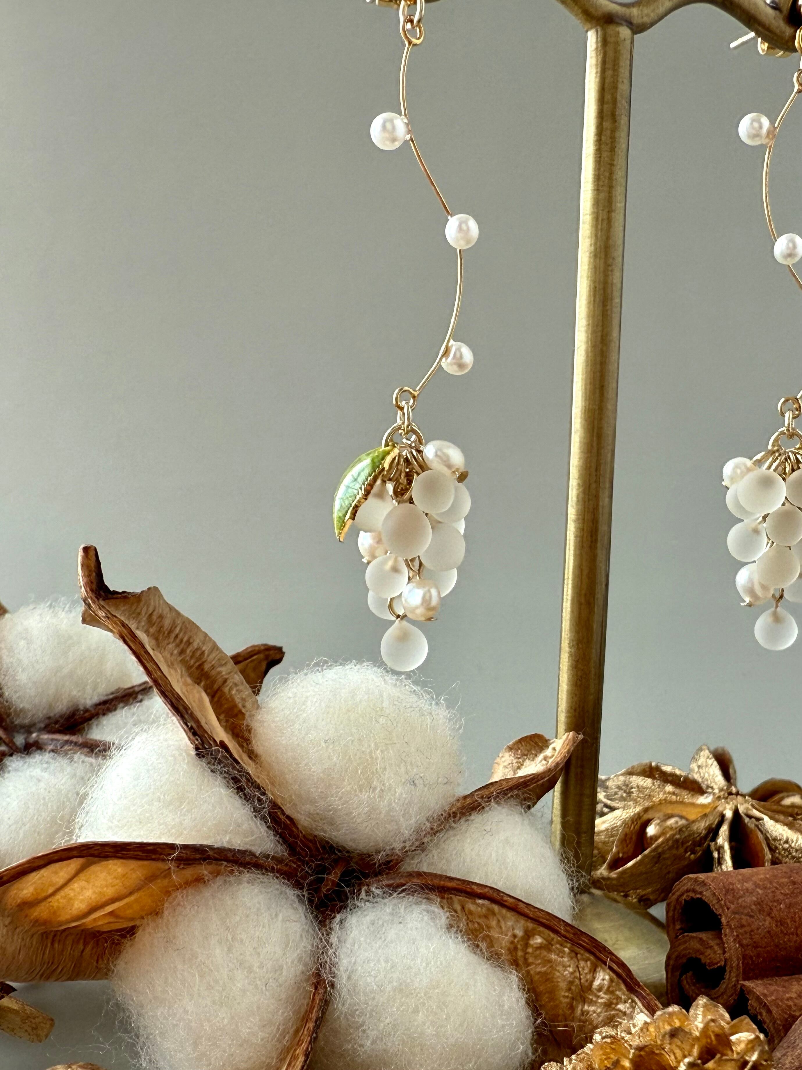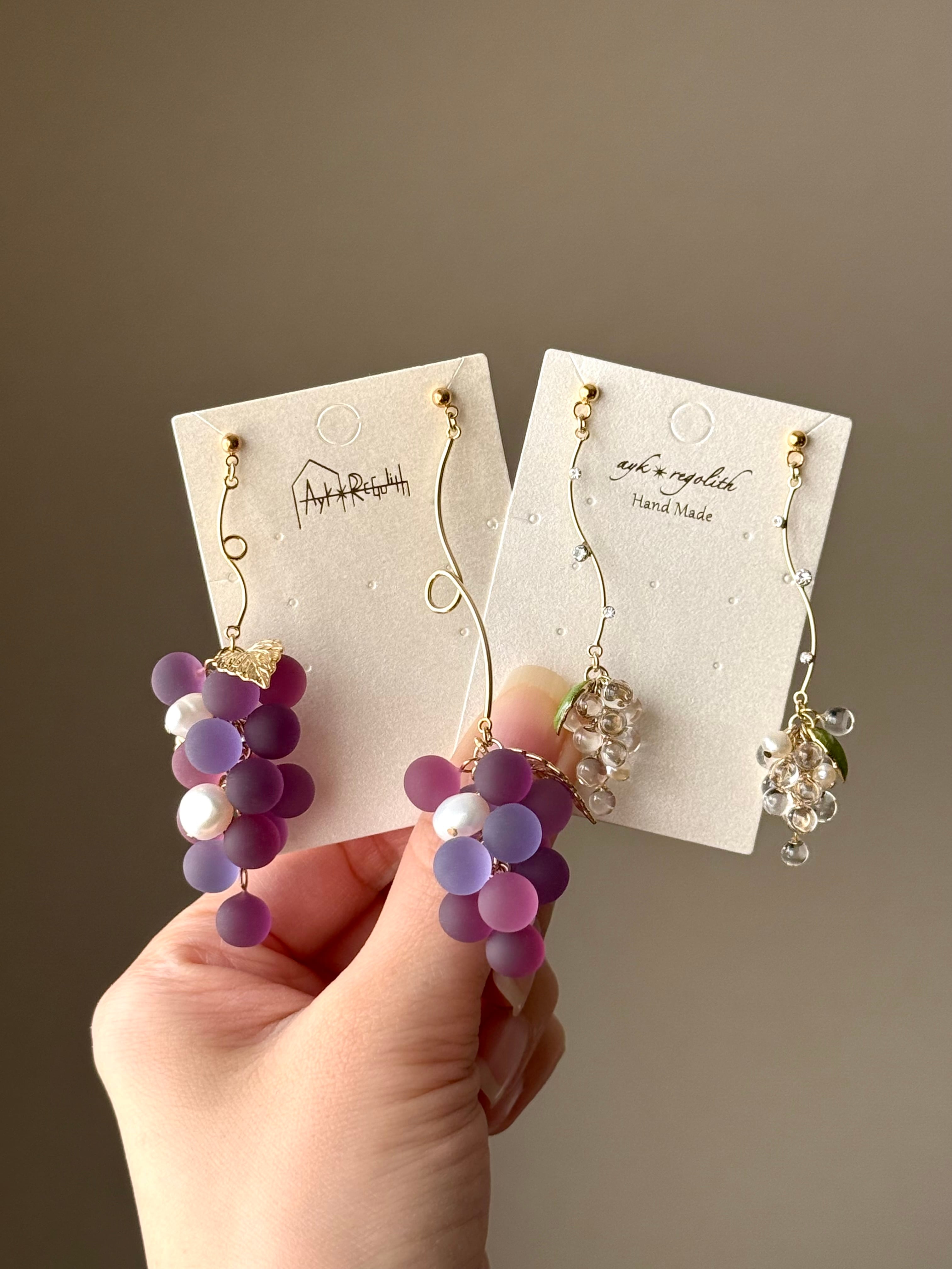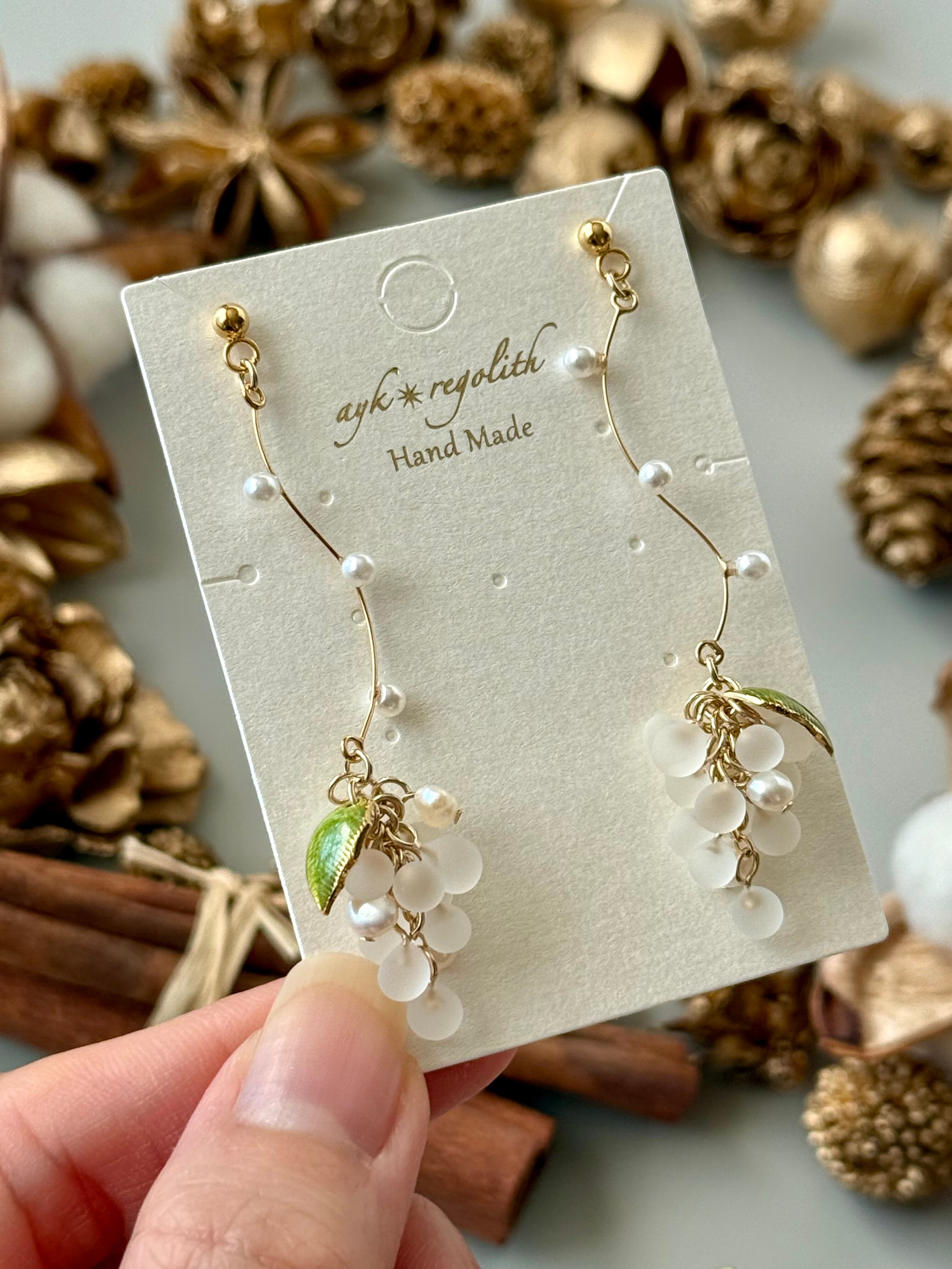 【一点限定・金具選択必須】Petit grape-clear matte(パール・ウェーブ)ピアス/イヤリング