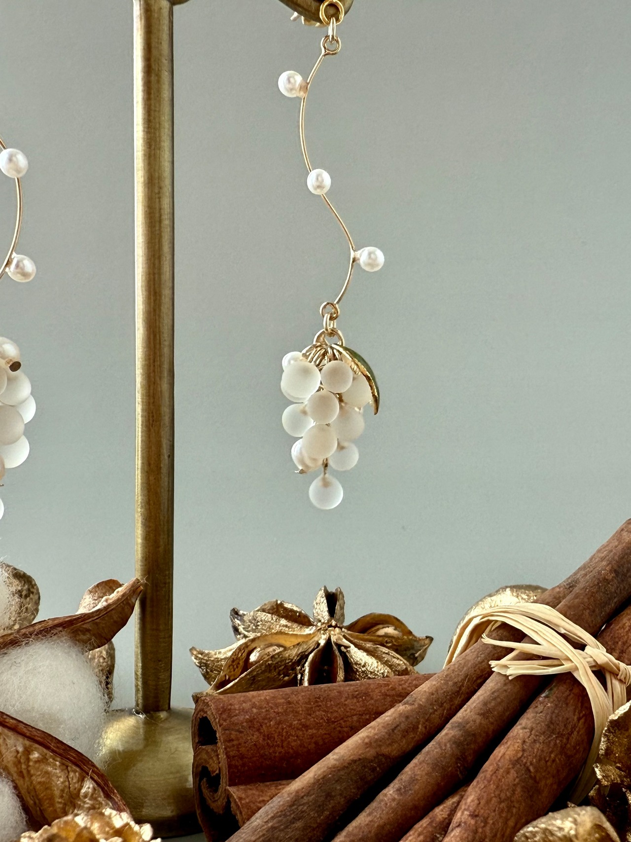 遊び心のある葡萄モチーフのデザインに、大人な印象のクリア×パールを組み合わせて絶妙なバランスで仕上げました。