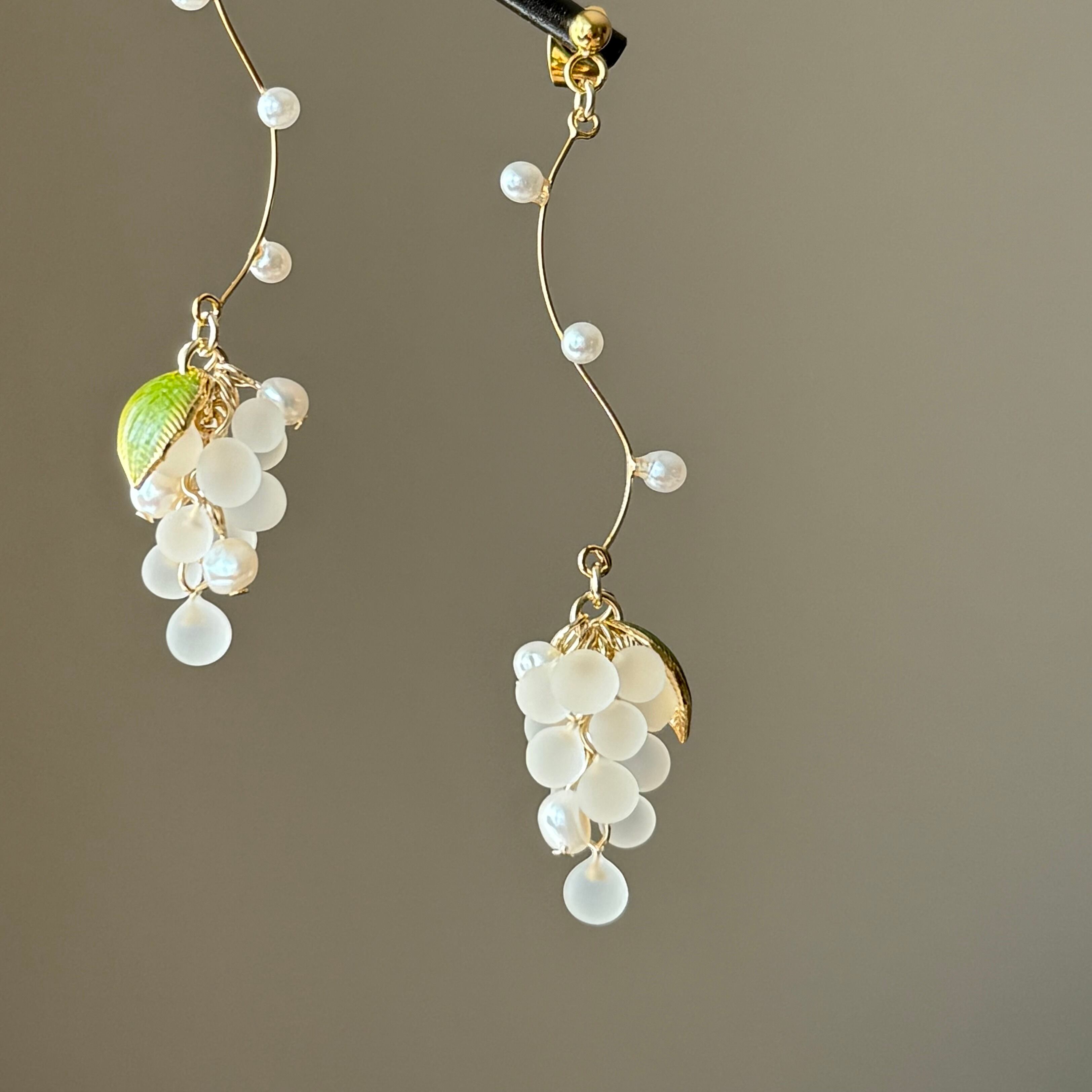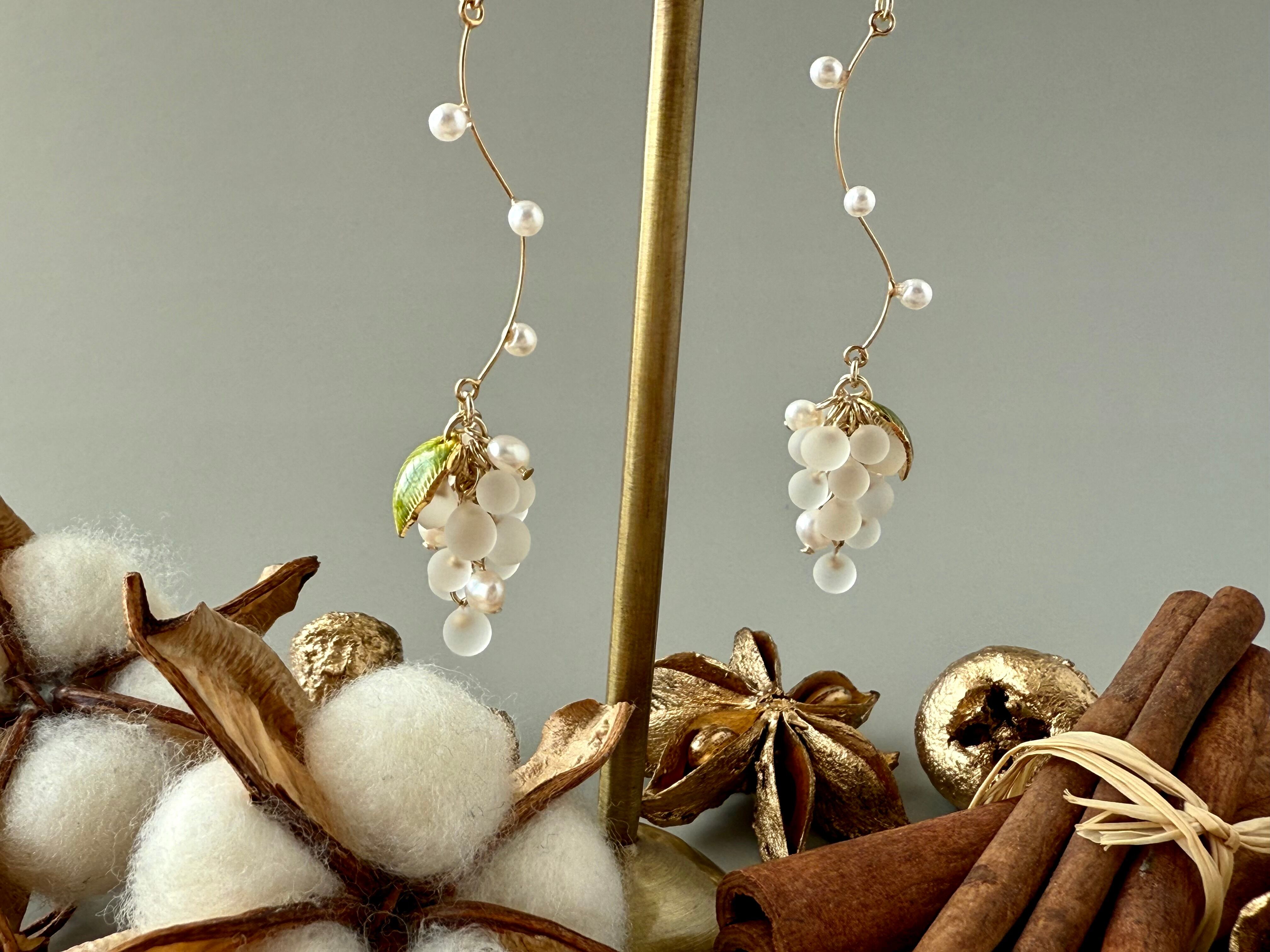 小さな小さなクリアマットの葡萄が耳元で揺れる耳飾り