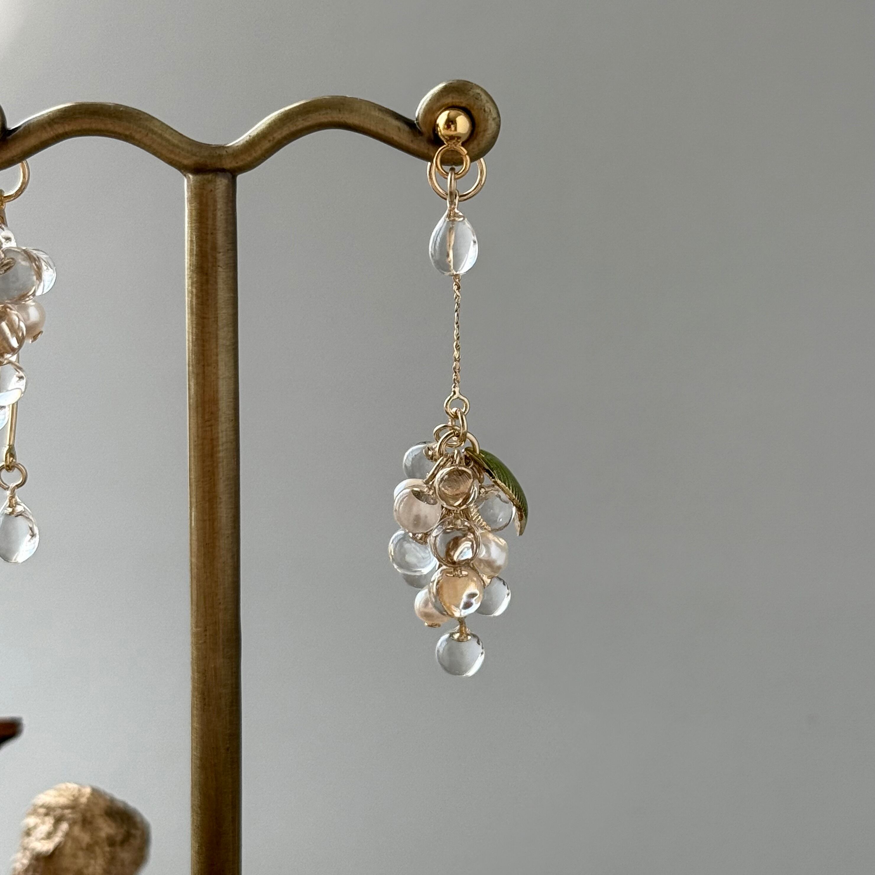小さな小さなクリアの葡萄が耳元で揺れる耳飾り