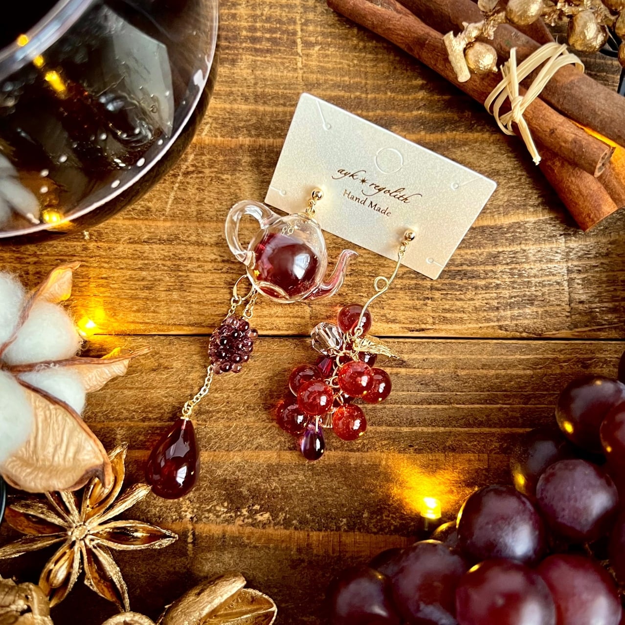 冬に飲みたいホットワインを耳飾りに。