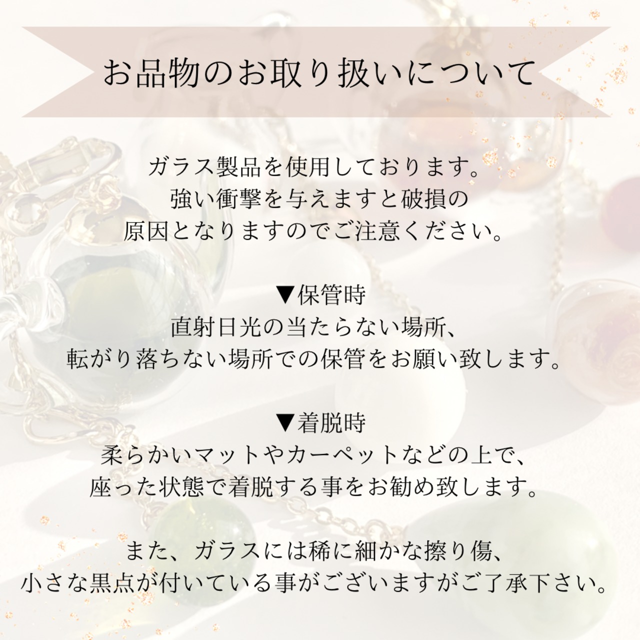 商品の一部にガラス素材を使用しております。