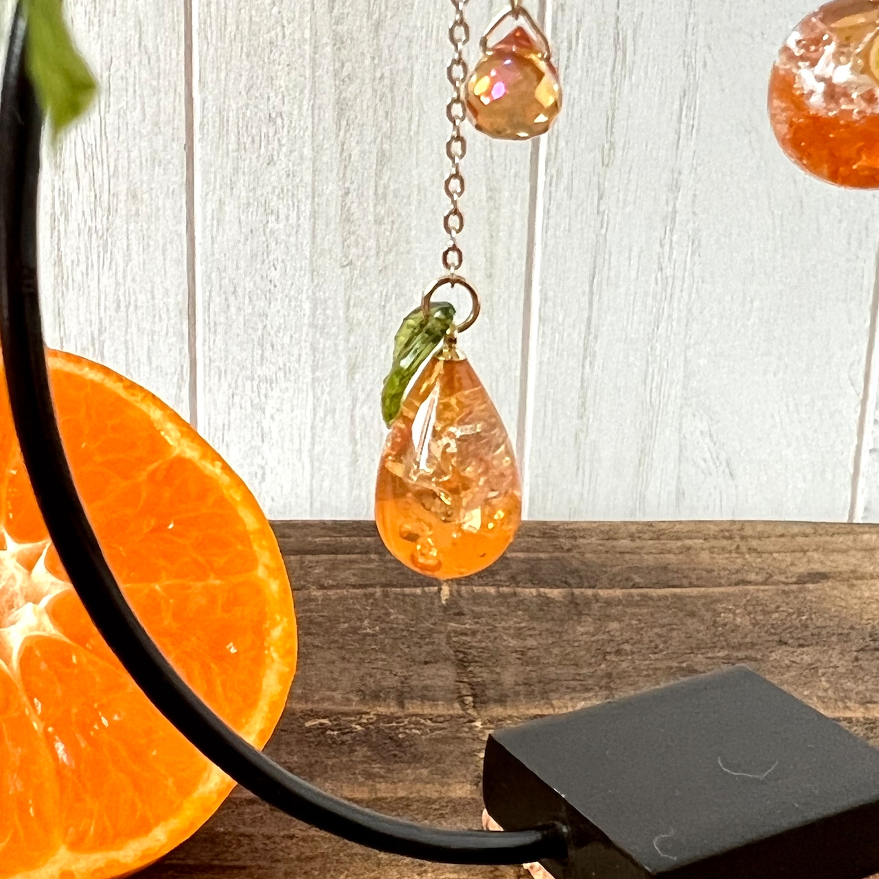 元気が出るオレンジカラーのオレンジティーを小さな耳飾りに。