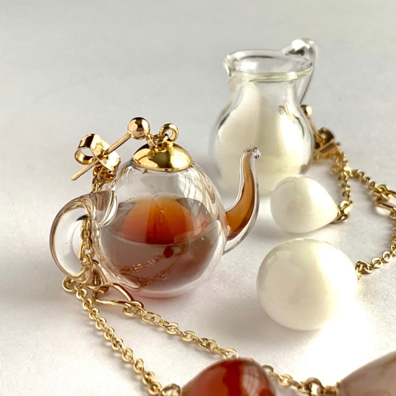 紅茶とミルクが混ざり始めた時に生まれる美しい一瞬のマーブル模様に感じるときめきをアクセサリーに詰め込みました。