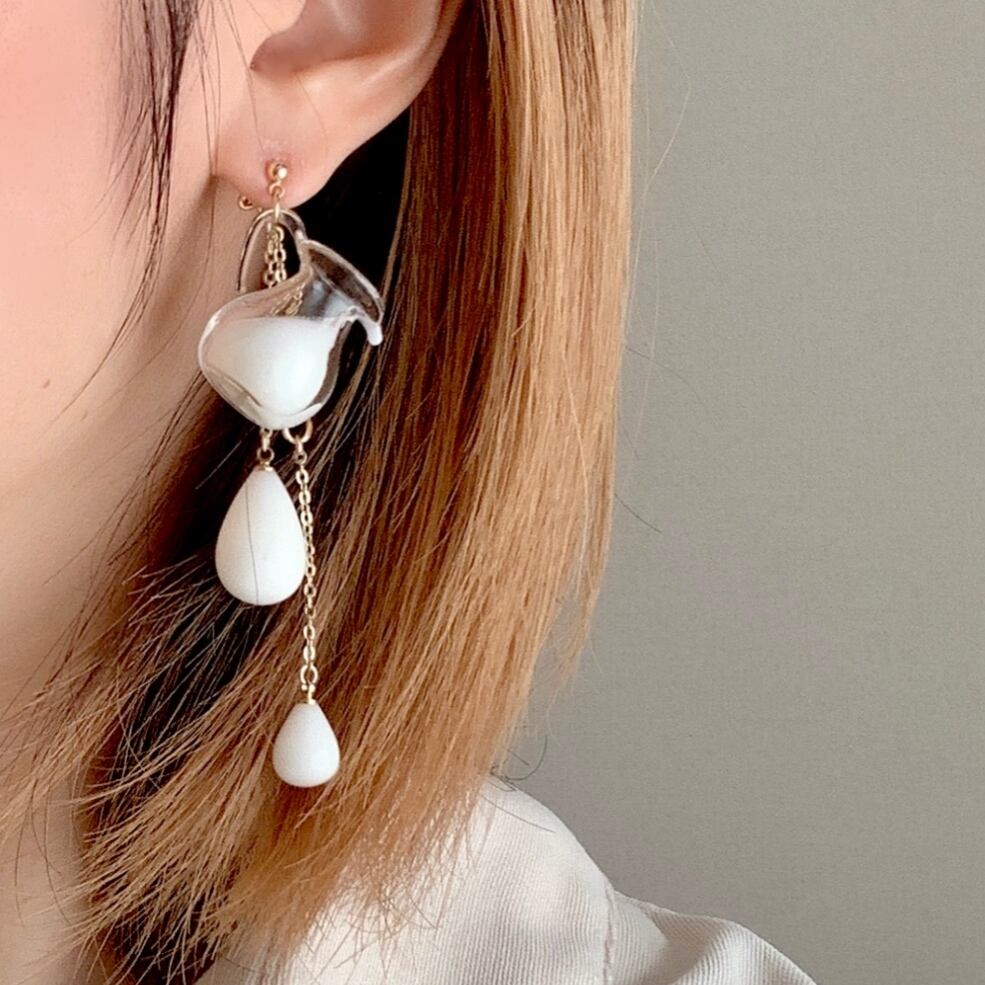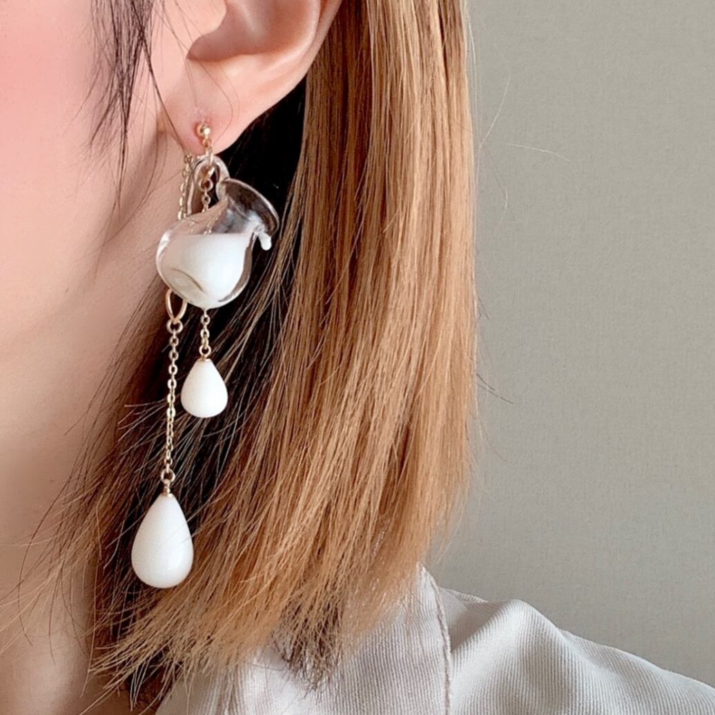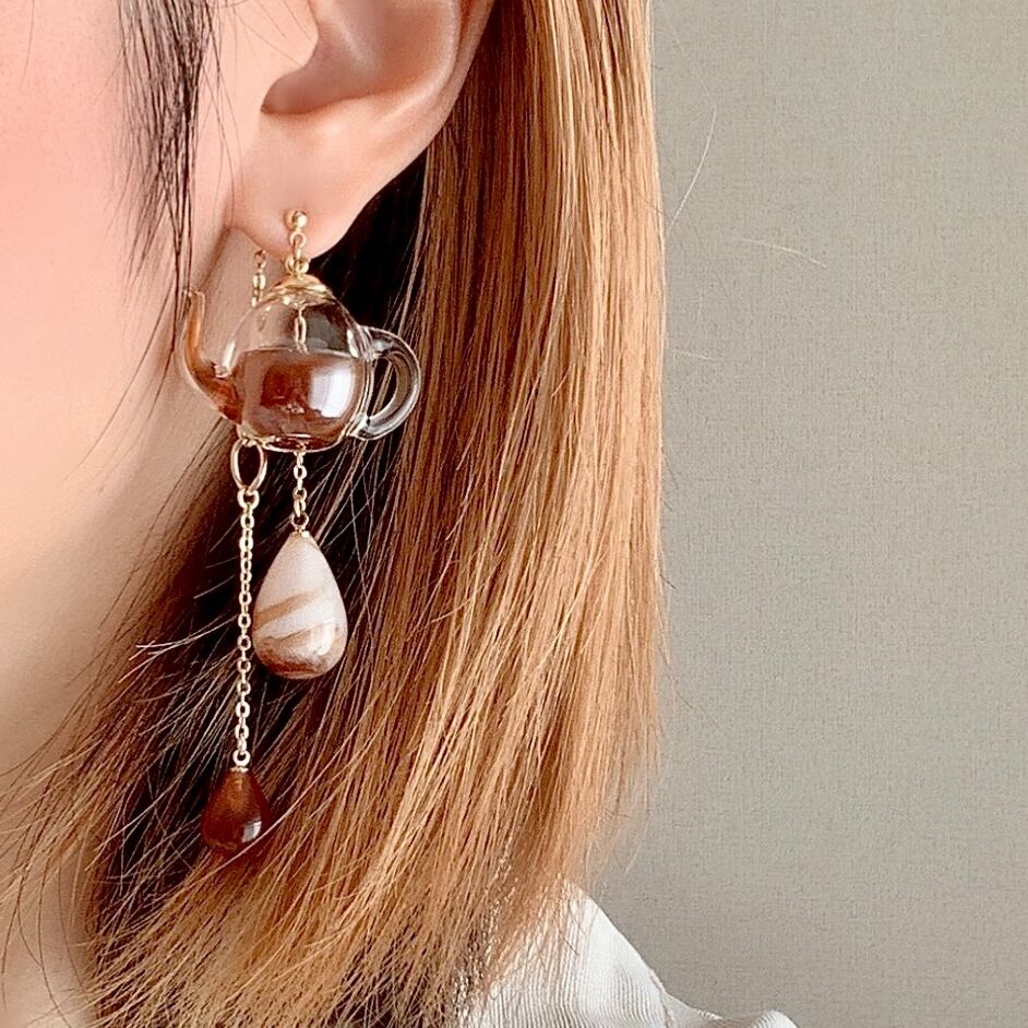 午後のひと時、ゆったりとした時間が流れるティータイムをイメージしたミルクティーの耳飾り