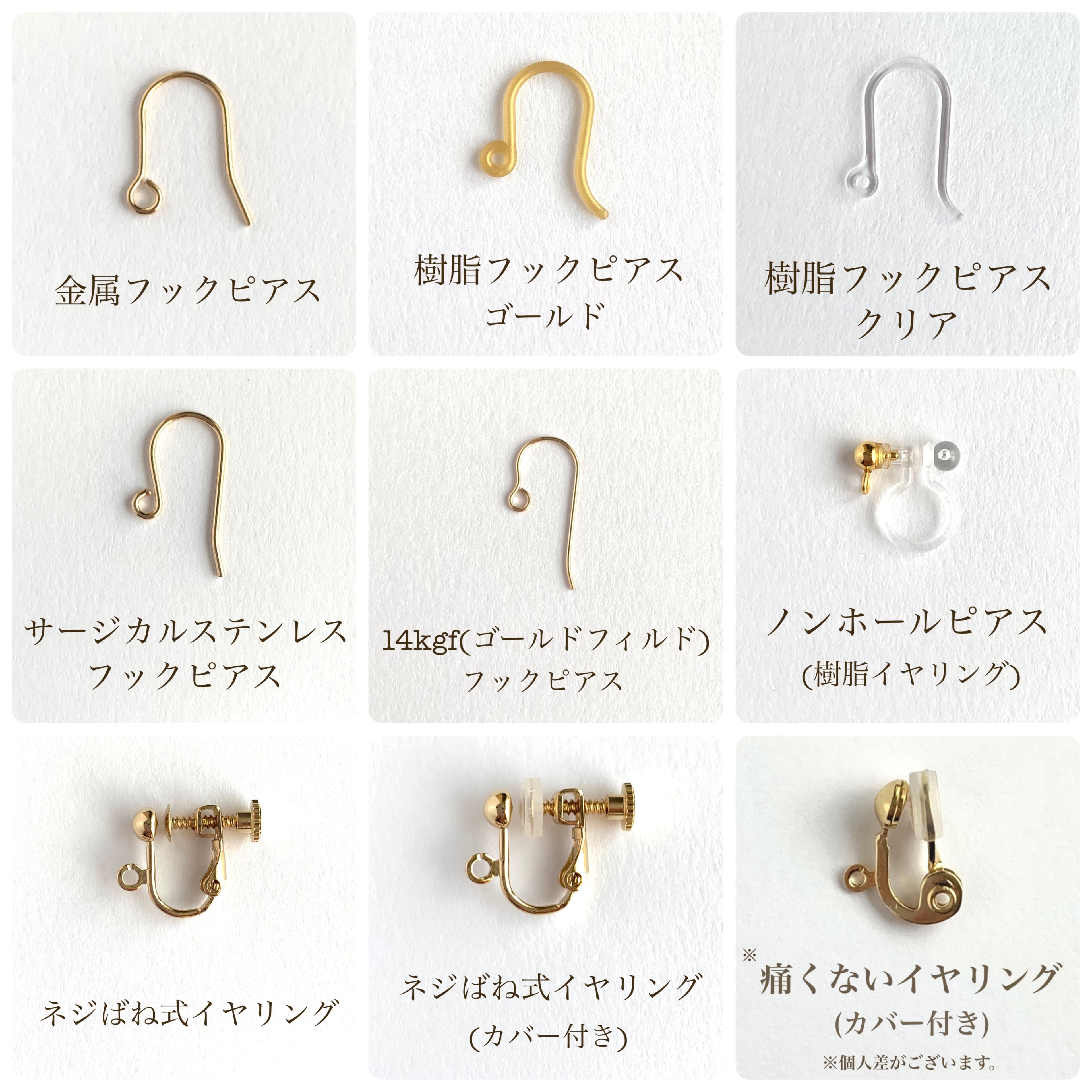樹脂ピアス/イヤリングは金属製の金具よりも強度が弱い為、お取り扱いの際は十分ご注意下さい。