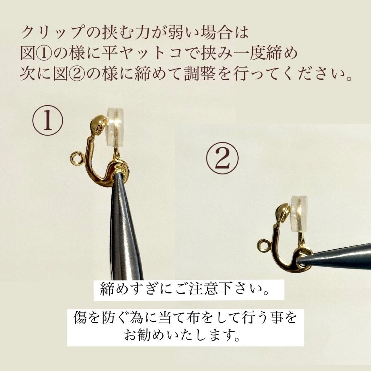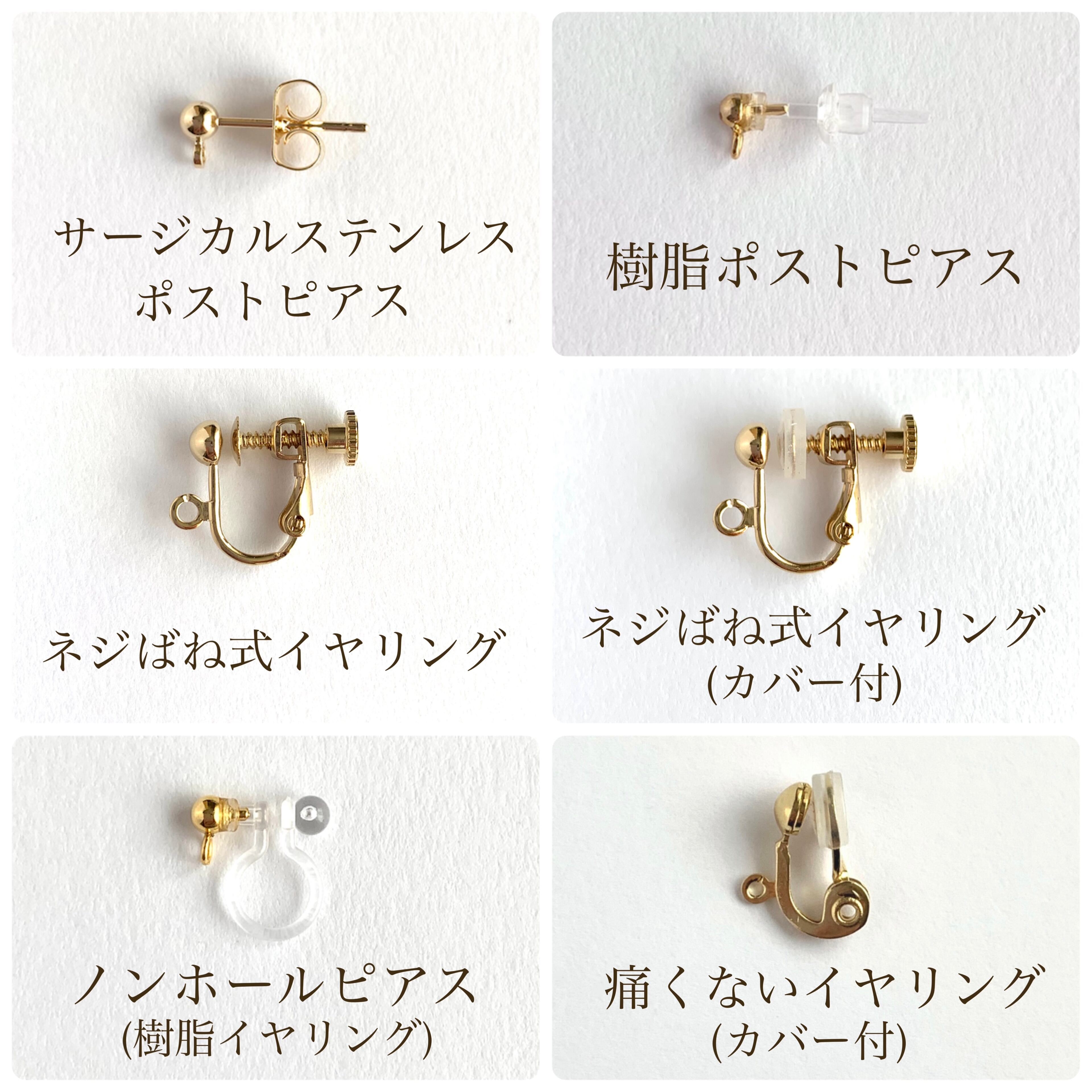 樹脂ピアス/イヤリングは金属製の金具よりも強度が弱い為、お取り扱いの際は十分ご注意下さい。