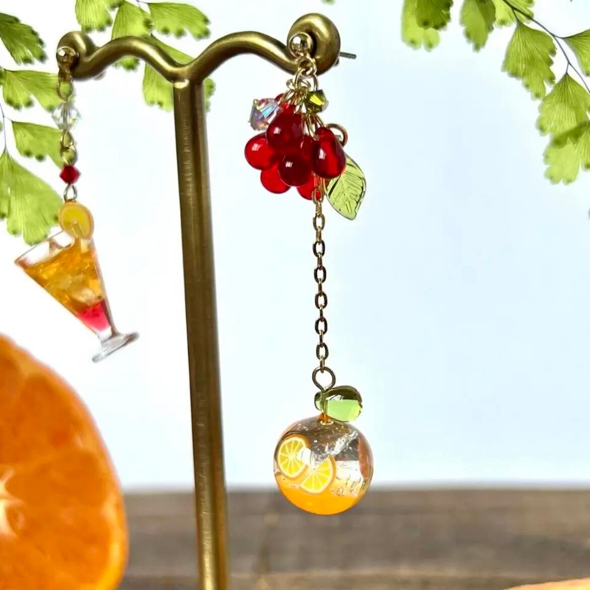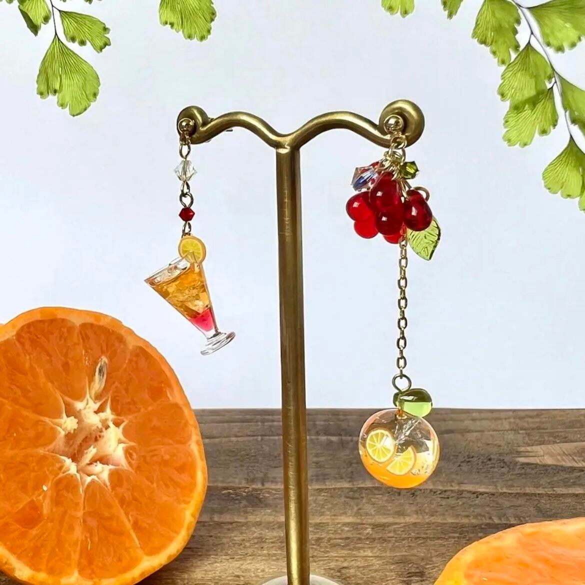 カシスとオレンジとカシスオレンジの耳飾り