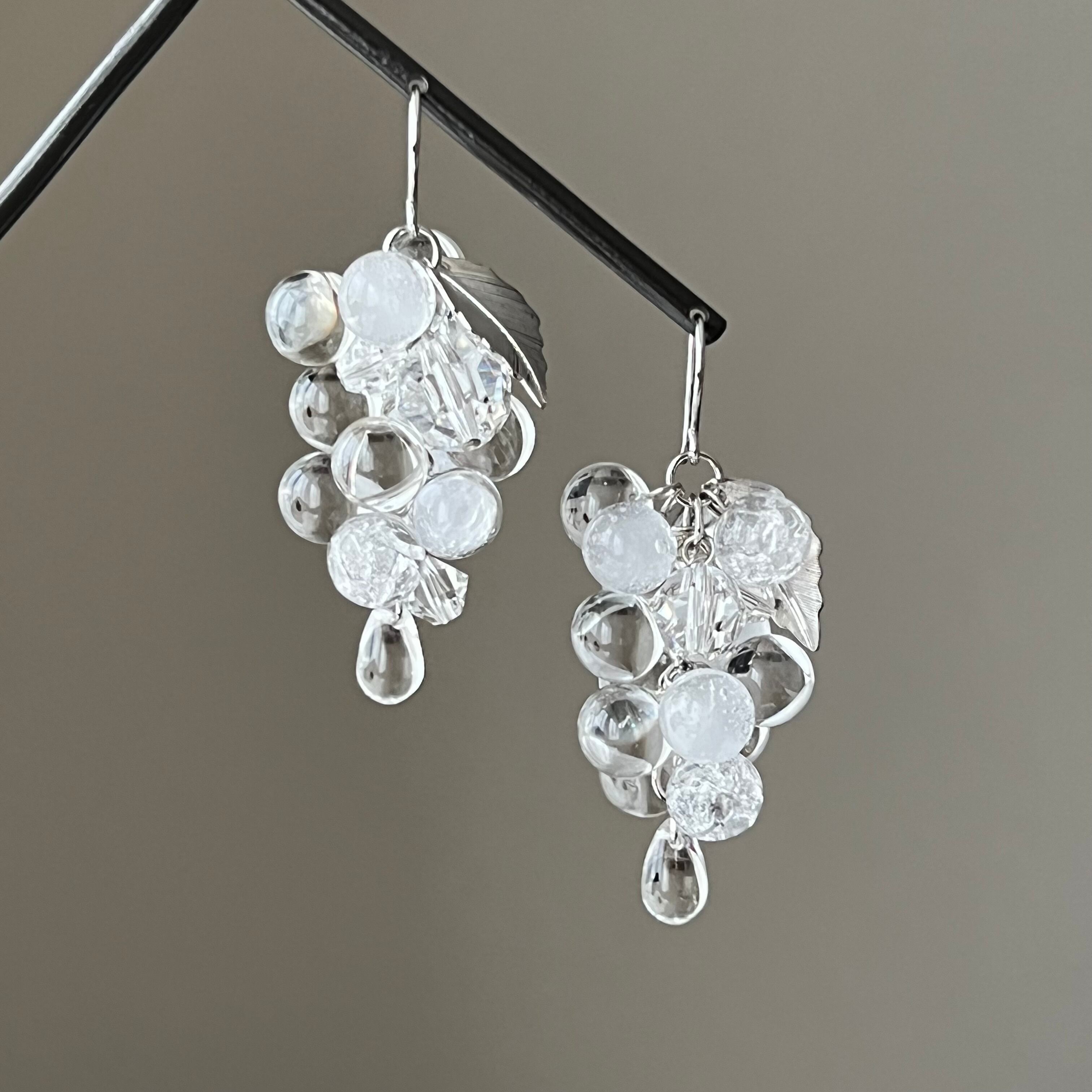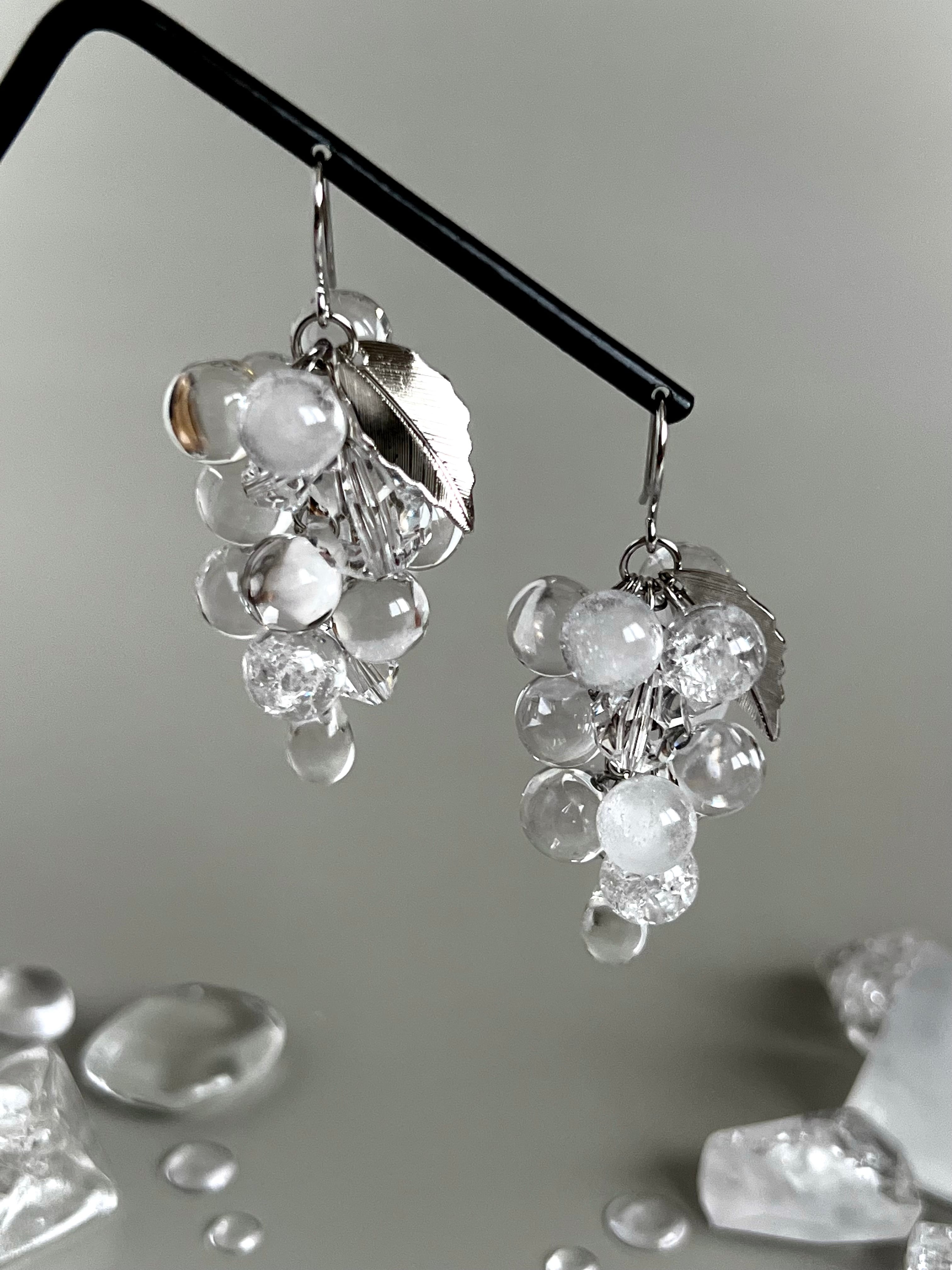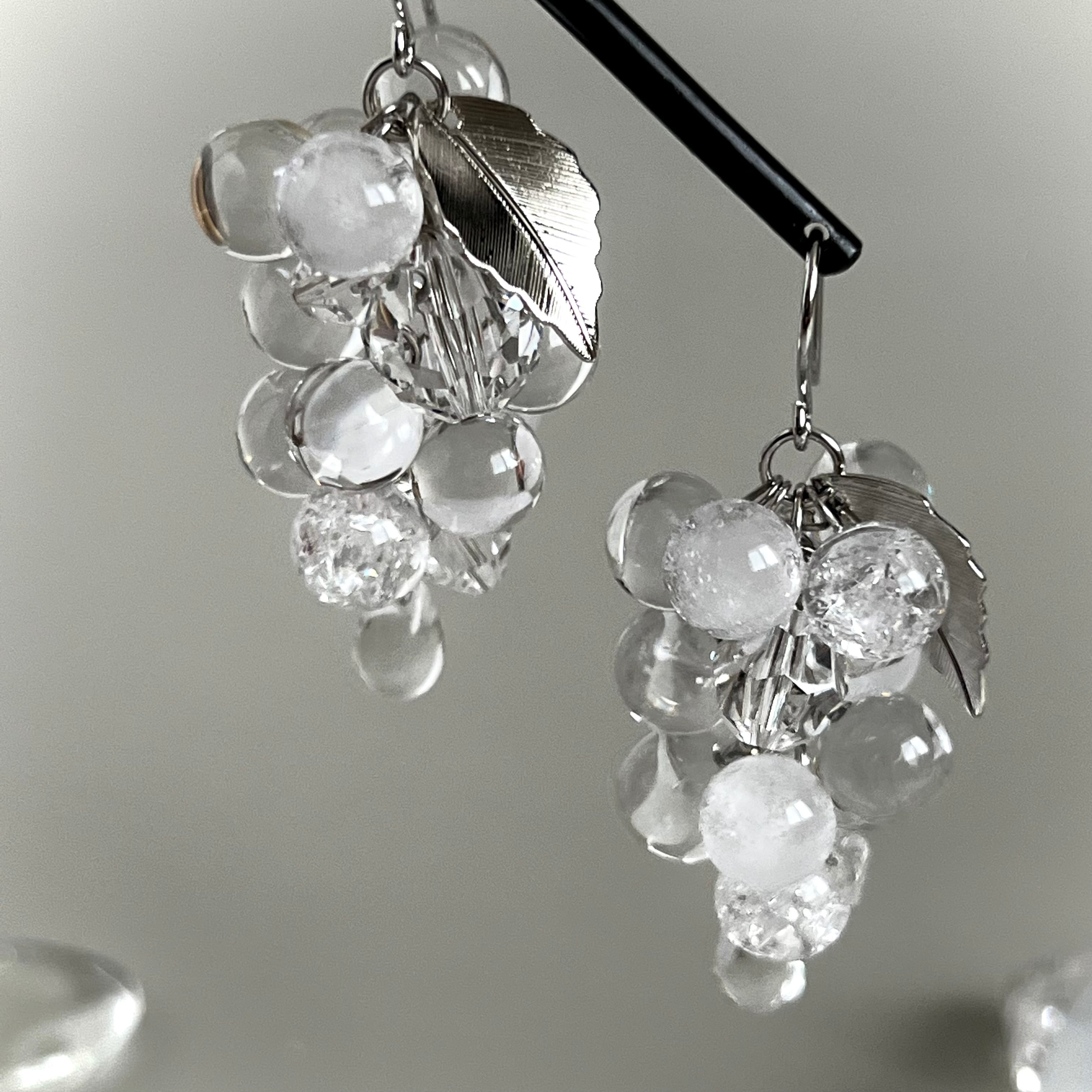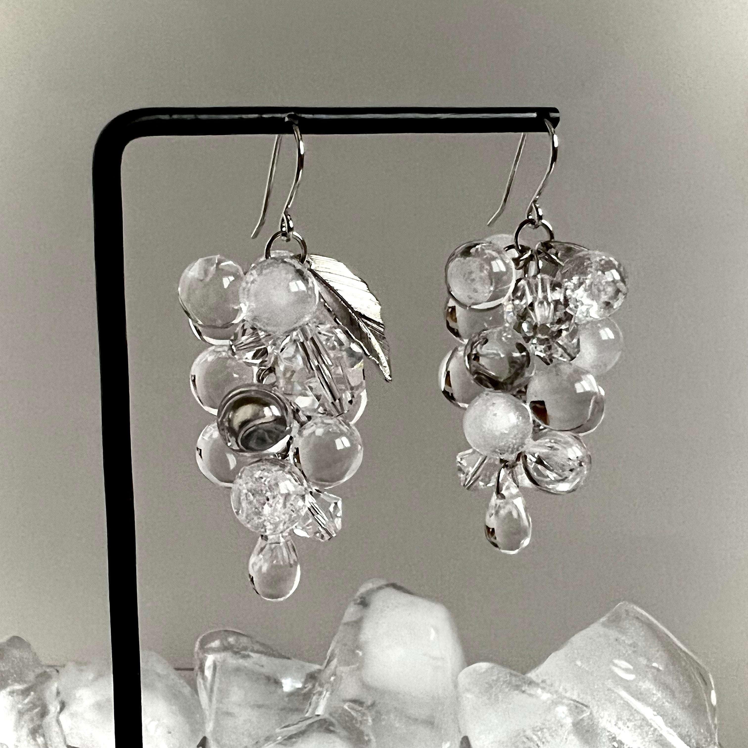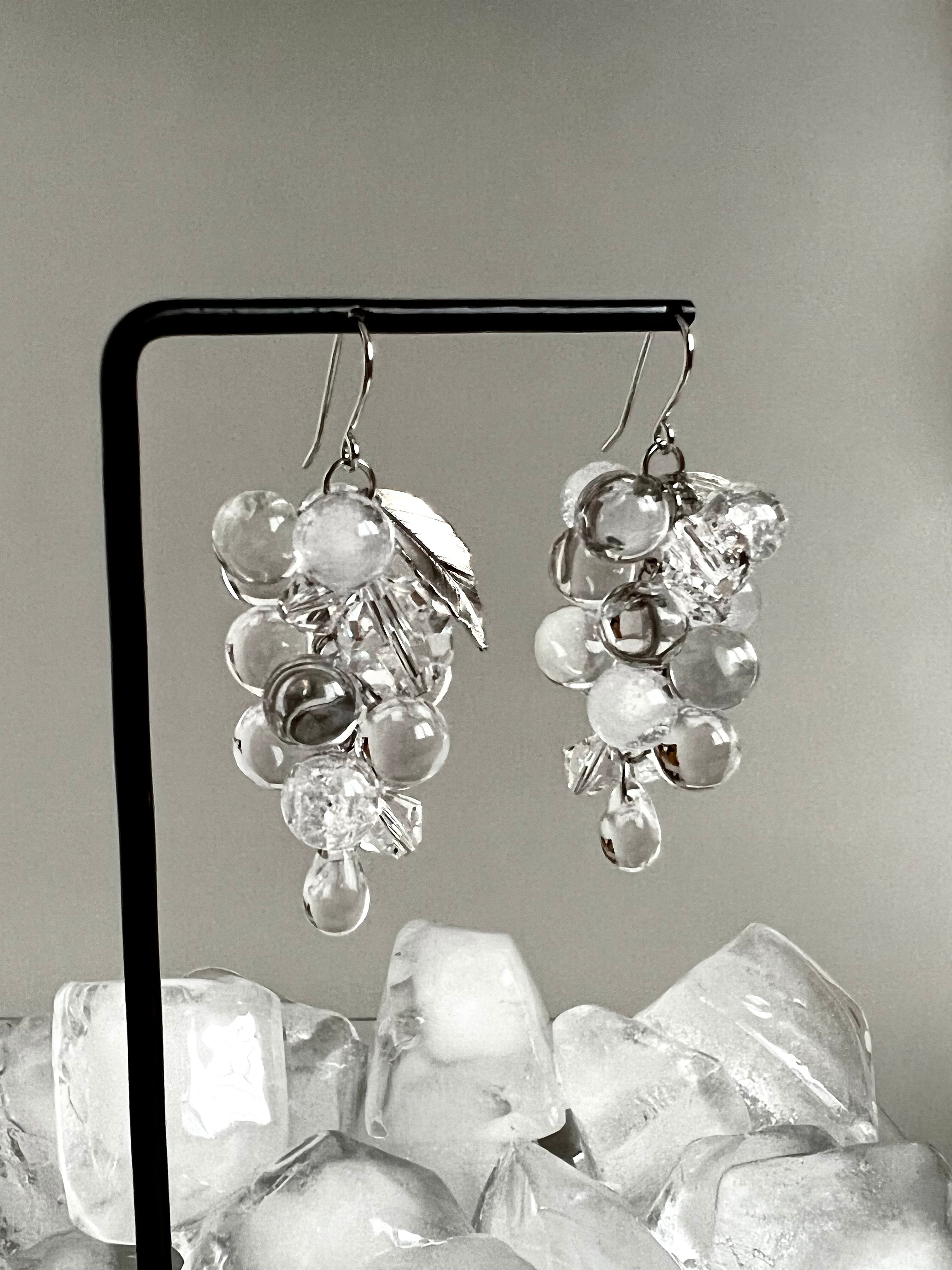 まるで氷で出来ているかの様な、パッと目を惹く葡萄の形の耳飾り